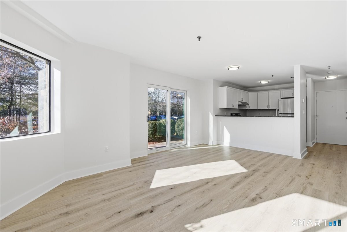 You'll love living in this first floor end unit has been fully remodeled with new carpeting, lighting, appliances, and flooring. The open layout brings in great natural light, and sliders lead to a private patio. The large bedroom offers enough space for a desk or workout area, and the unit includes a new in unit stackable washer and dryer. The remodeled bath features a walk in shower. The building provides ample off-street parking, a spacious lobby, basement storage, and elevator access. Its convenient Whitneyville location allows easy walking to shopping, the local library and post office, grocery stores, restaurants, and bus lines. A bright, updated, and affordable condo with low monthly costs - an excellent opportunity in a walkable neighborhood. Perfect for investors as well!