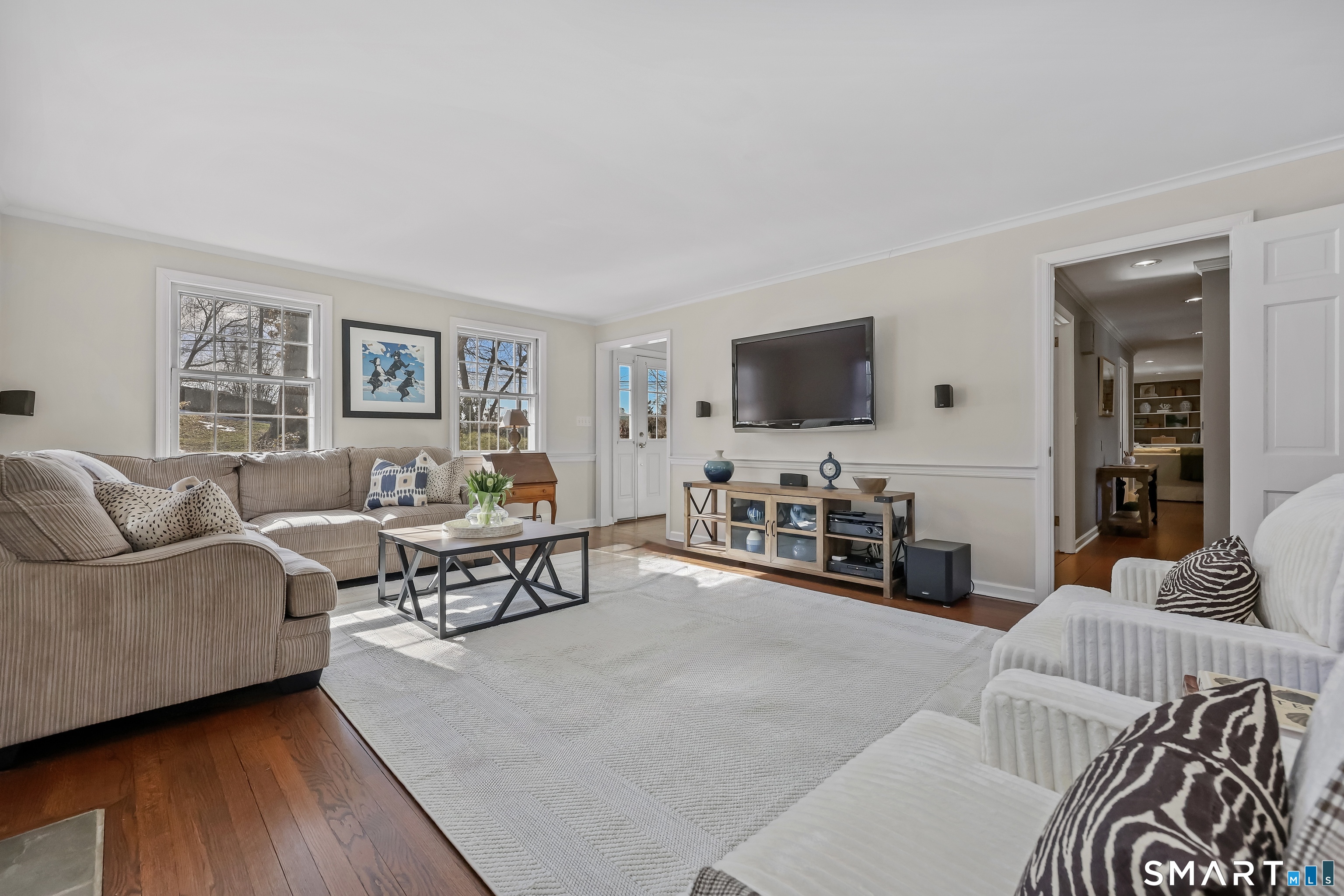Gracious Colonial on a Private and Peaceful One Acre Lot, Just a minutes walk to Train, Town and Schools! Bike to the beach! Functional, Flowing Layout that accommodates easy family living as well as great entertaining. New Custom Screened-in Porch overlooking the large and private One Acre Backyard! Family football? croquet? corn hole? host a wedding? Room for all of it! Your own oasis, yet convenient to everything! Hardwood Floors throughout, Two Fireplaces, High End Stainless Steel Appliances, Granite Kitchen Counter Tops, Gas Range, Counter seating, Family Room and Kitchen Open Living Space w/ Built-ins, Large front to back Living Room with Fireplace, Dining Room with Chair Rail, All four bedrooms on 2nd floor with 3 full baths, Primary with Primary Bath, Laundry and Walk-in Closets/Dressing room.