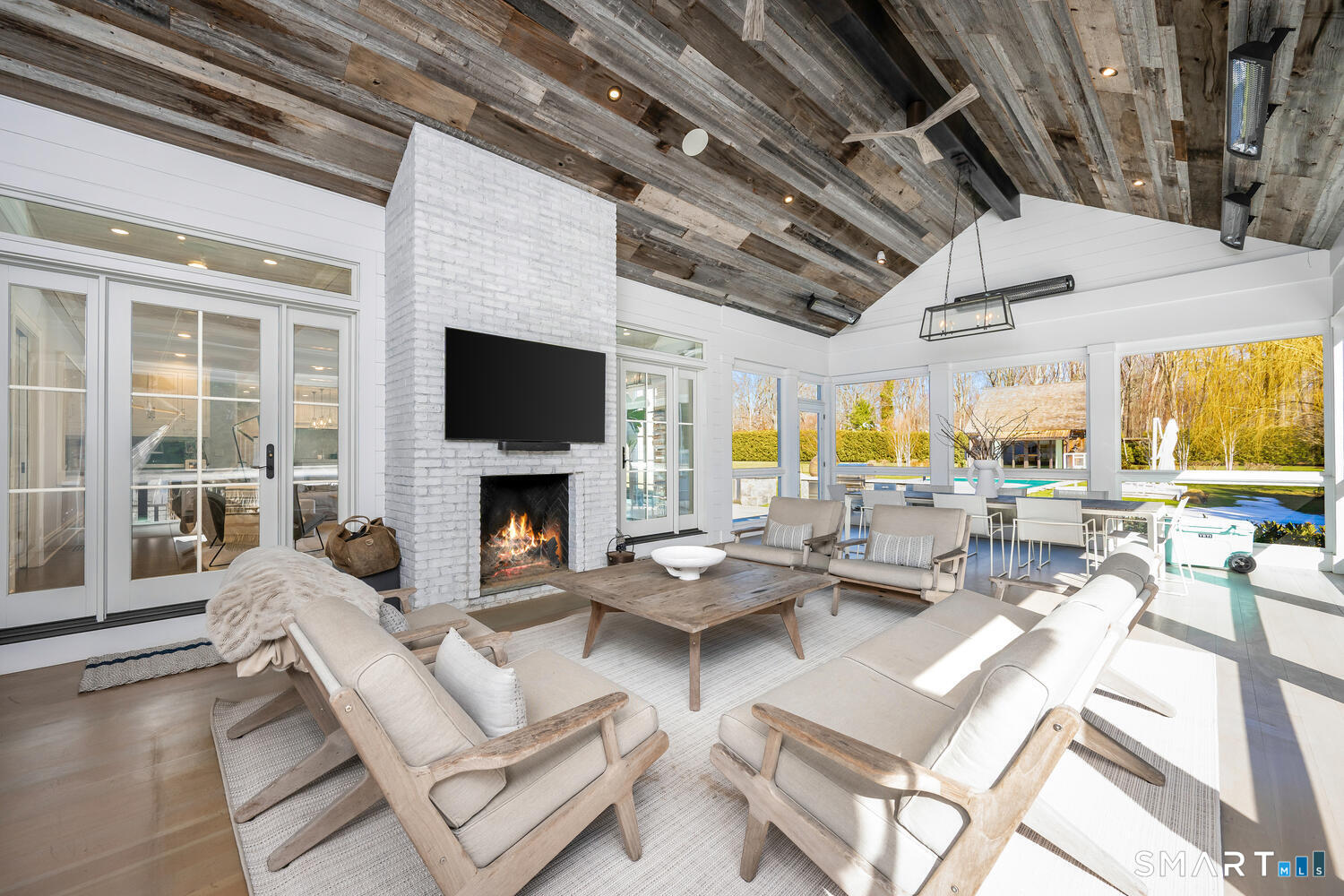 Architecturally stunning six-bedroom Colonial graces 2.29 level acres designed for resort-style living with pool, pool house, outdoor shower, stone terrace with kitchen & garden masterfully built in 2014. Beautifully appointed 6,117 sq ft interior brimming with exquisite details including high coffered ceilings, transom topped doorways & box molding. Striking double height foyer introduces ideal floor plan, perfect for everyday living & entertaining, anchored by chef's marble-clad kitchen which opens to large family room with fireplace flanked by doors to magnificent screened porch with industrial grade heaters & fireplace. Elegant dining room with fully equipped butler's pantry, stylish living room & office both with fireplaces, mudroom & two powder rooms round out this level. Sumptuous primary suite with fireplace, his/her walk-in closets, deluxe bath with radiant heated floors; two en-suite bedrooms, two bedrooms with Jack/Jill bath, homework area, laundry room comprise 2nd floor. Generous lower-level boasts media room with projector, game room, wine room with wine refrigerator, bedroom, full bath & generator. Unfinished top floor features ample storage & unlimited potential. Outdoor Kalamazoo gourmet kitchen is fitted with grill, pizza oven, smoker & kegerators. Incredible pool house (add'l 860 sq ft) includes custom kitchenette, half bath with outdoor shower & loft. Ideally located on professionally landscaped, private lot with fenced-in yard near all Darien offers.