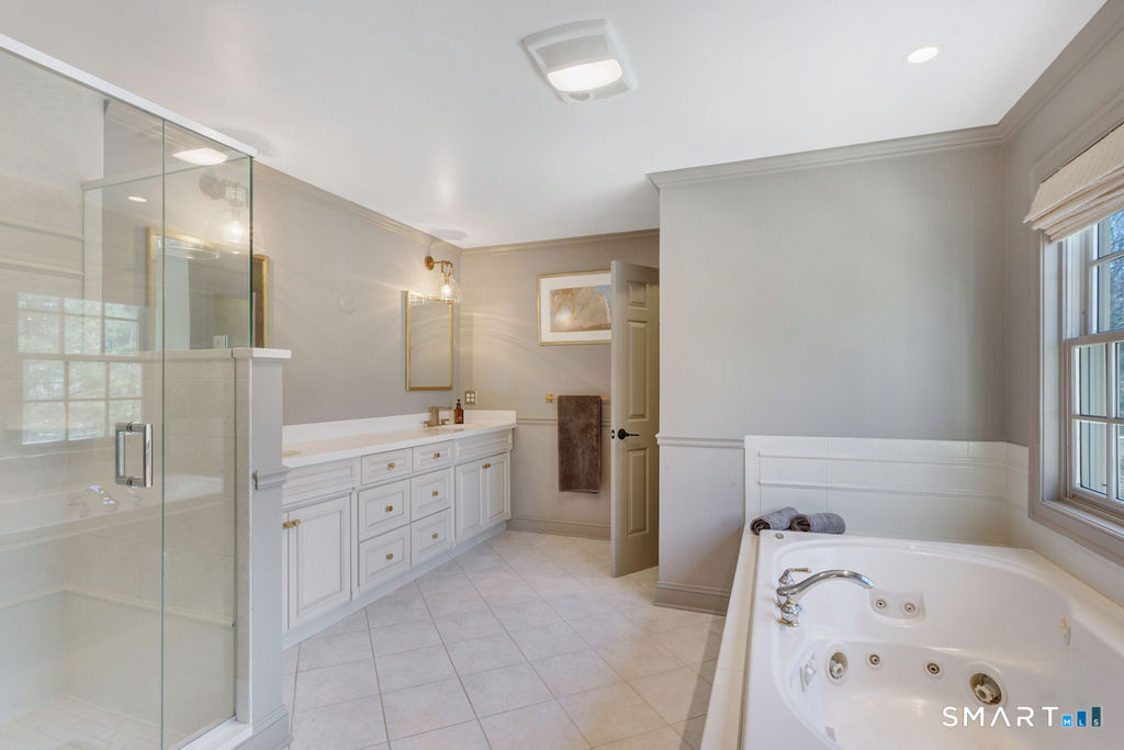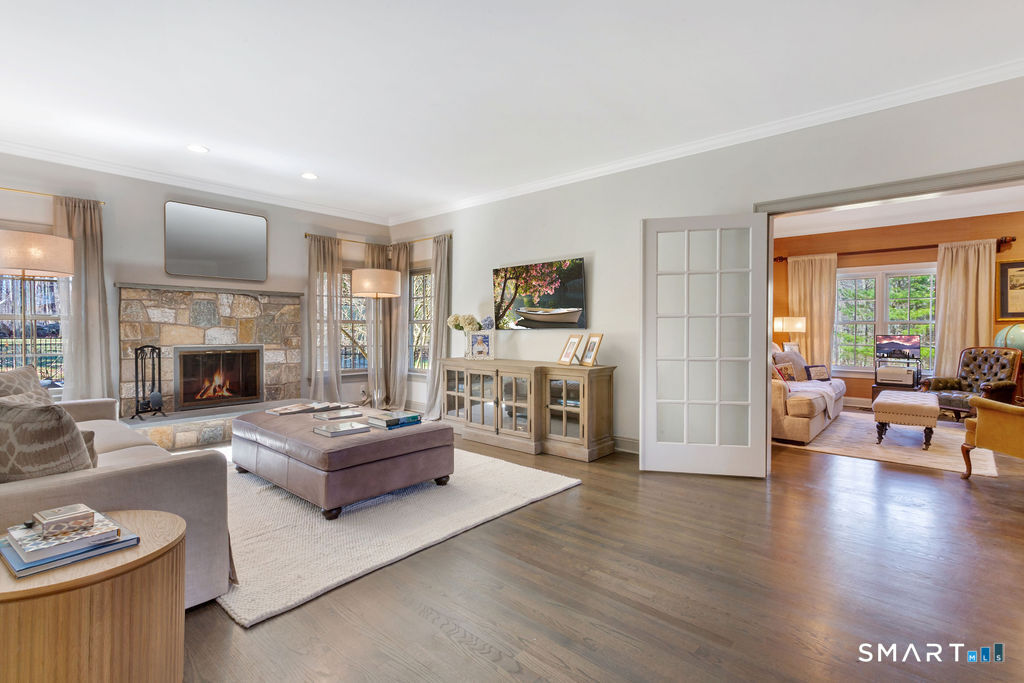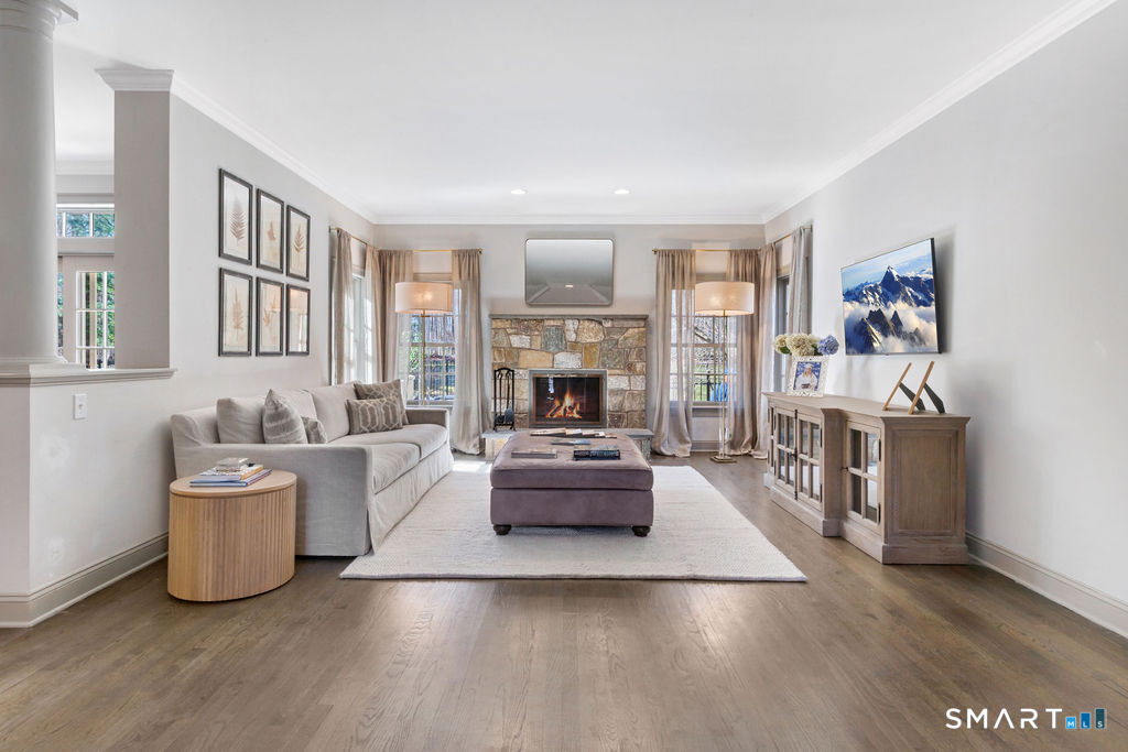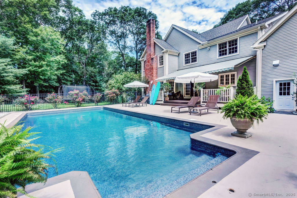 Perched back from and above a quiet cul-de-sac, in one of Madison's most prestigious communities, this stately five bedroom Colonial is minutes from I-95 and Madison's Town Green and beaches. The home is perfect for entertaining boasting a renovated chef's kitchen with dining area; adjacent to the home's covered deck overlooking an inviting in-ground pool, and spacious family room with fireplace. A private office is adjacent to the family room. The second floor embraces 5 bedrooms including a large primary bedroom suite with recently renovated full bath, two additional bedroom suites complimented by two bedrooms which share a bath; all also renovated. Downstairs enjoy a game of pool or watch your favorite sport warmed by one of the home's 4 fireplaces. A list of recent improvements is included.