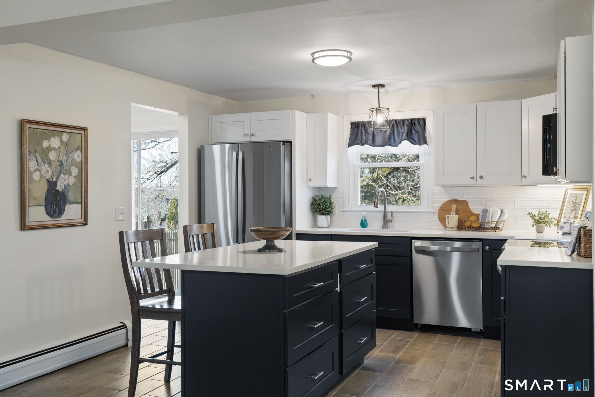 This inviting Cape Cod style home at 39 Charter Road blends classic charm with thoughtful updates in a quiet Ellington setting. The main level features a comfortable living room with vaulted ceilings and sliders that fill the space with natural light, a cozy family room anchored by a fireplace, and a beautifully updated kitchen with crisp cabinetry, new stainless-steel appliances, tile flooring, and an island that opens seamlessly to the dining area, making everyday living and entertaining feel effortless. Hardwood floors run throughout and have been professionally refinished, adding warmth and character, while new windows enhance both comfort and efficiency. The home has been updated with new PEX service lines throughout, offering added peace of mind. All bathrooms are conveniently located on the main level, providing easy everyday functionality. Upstairs, the bedrooms feel bright and welcoming, with vaulted ceilings and hardwood floors, along with additional flexible bedroom spaces ideal for guests, a home office, or hobbies. A full unfinished basement offers excellent storage, and the manageable yard completes the picture in a friendly neighborhood close to parks, schools, and everyday amenities.
