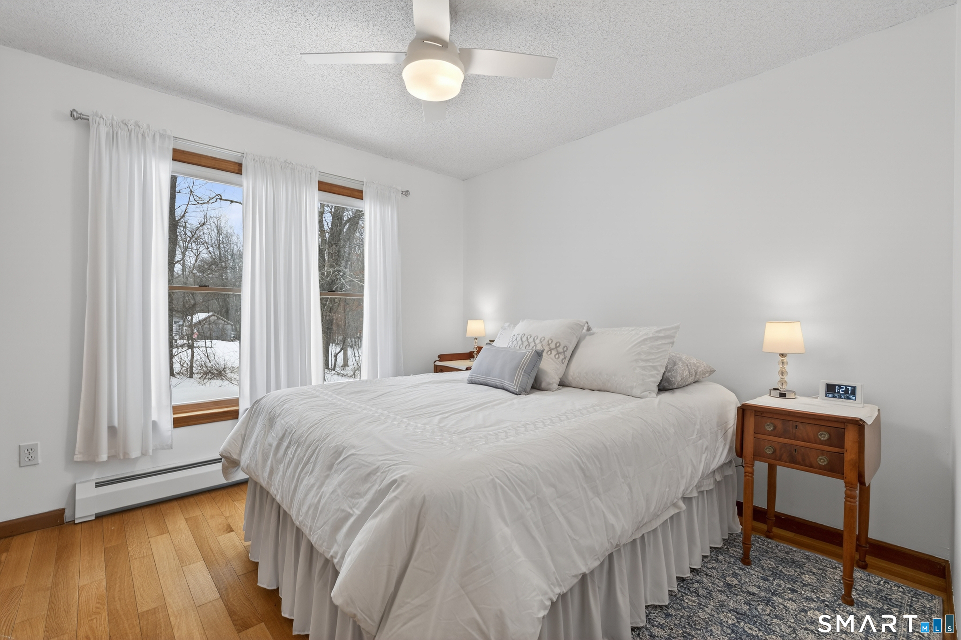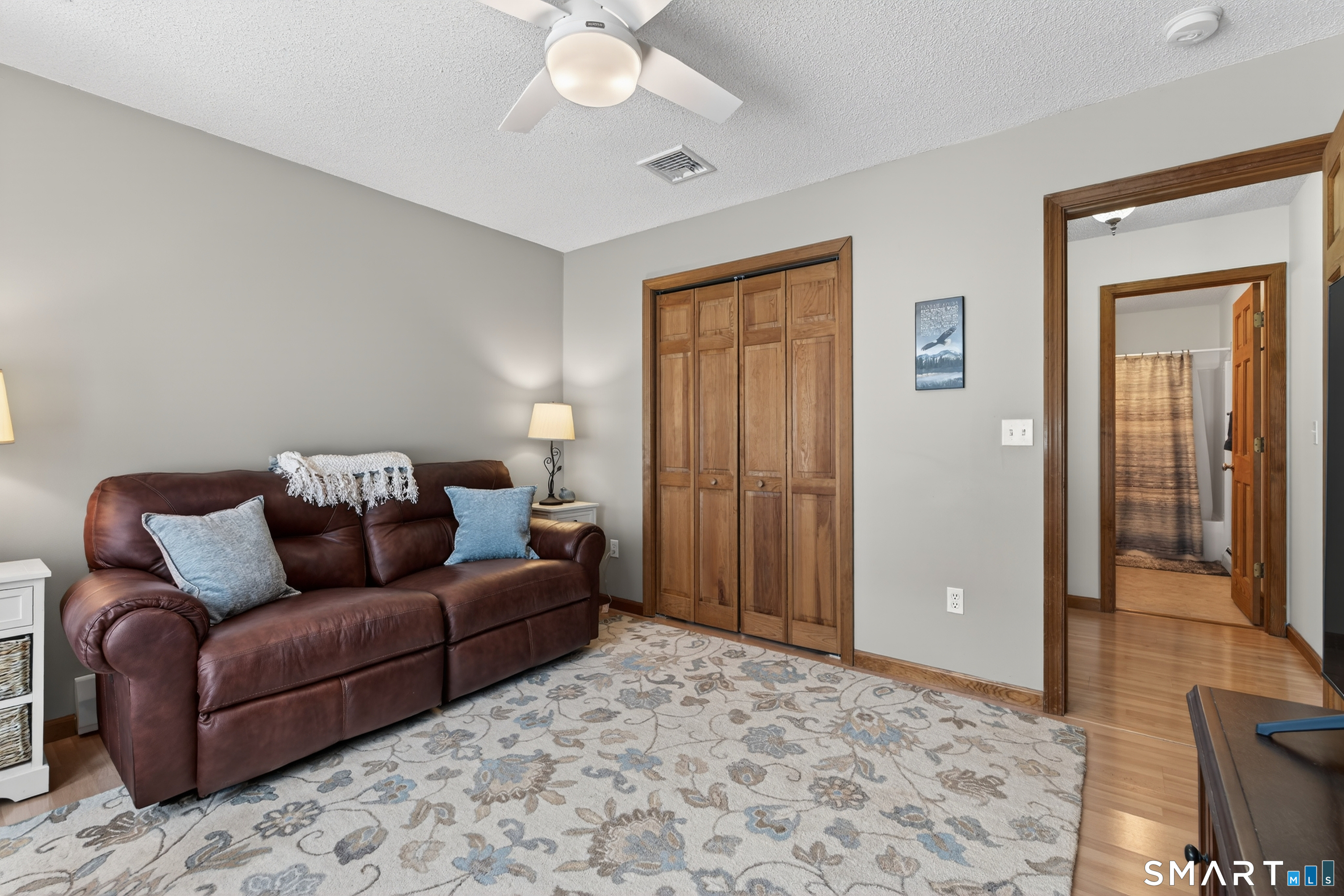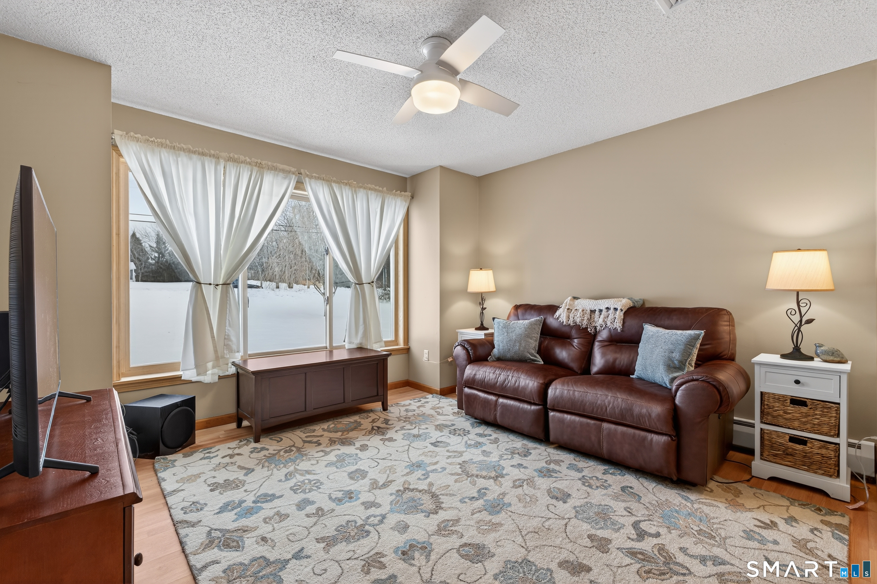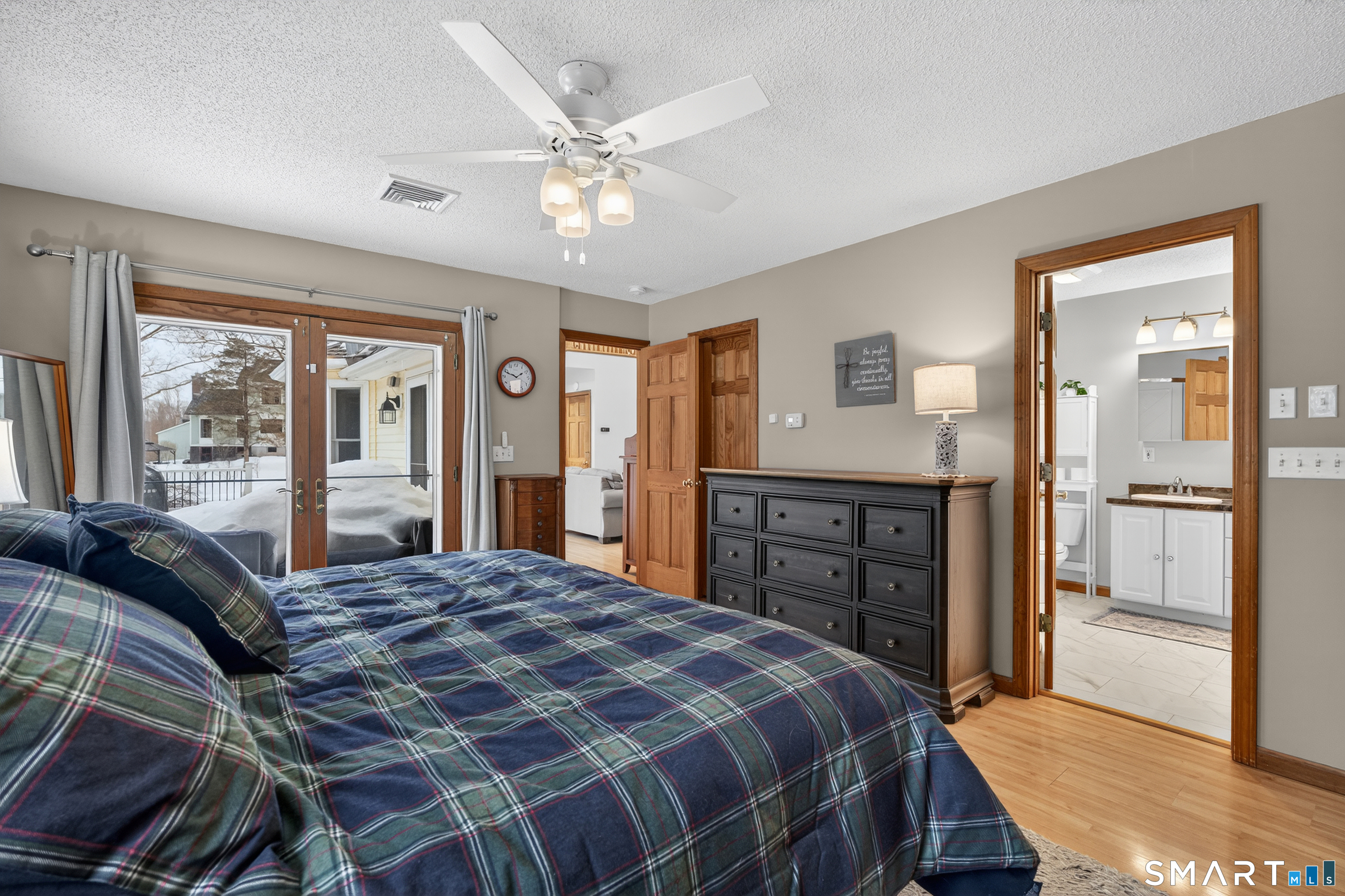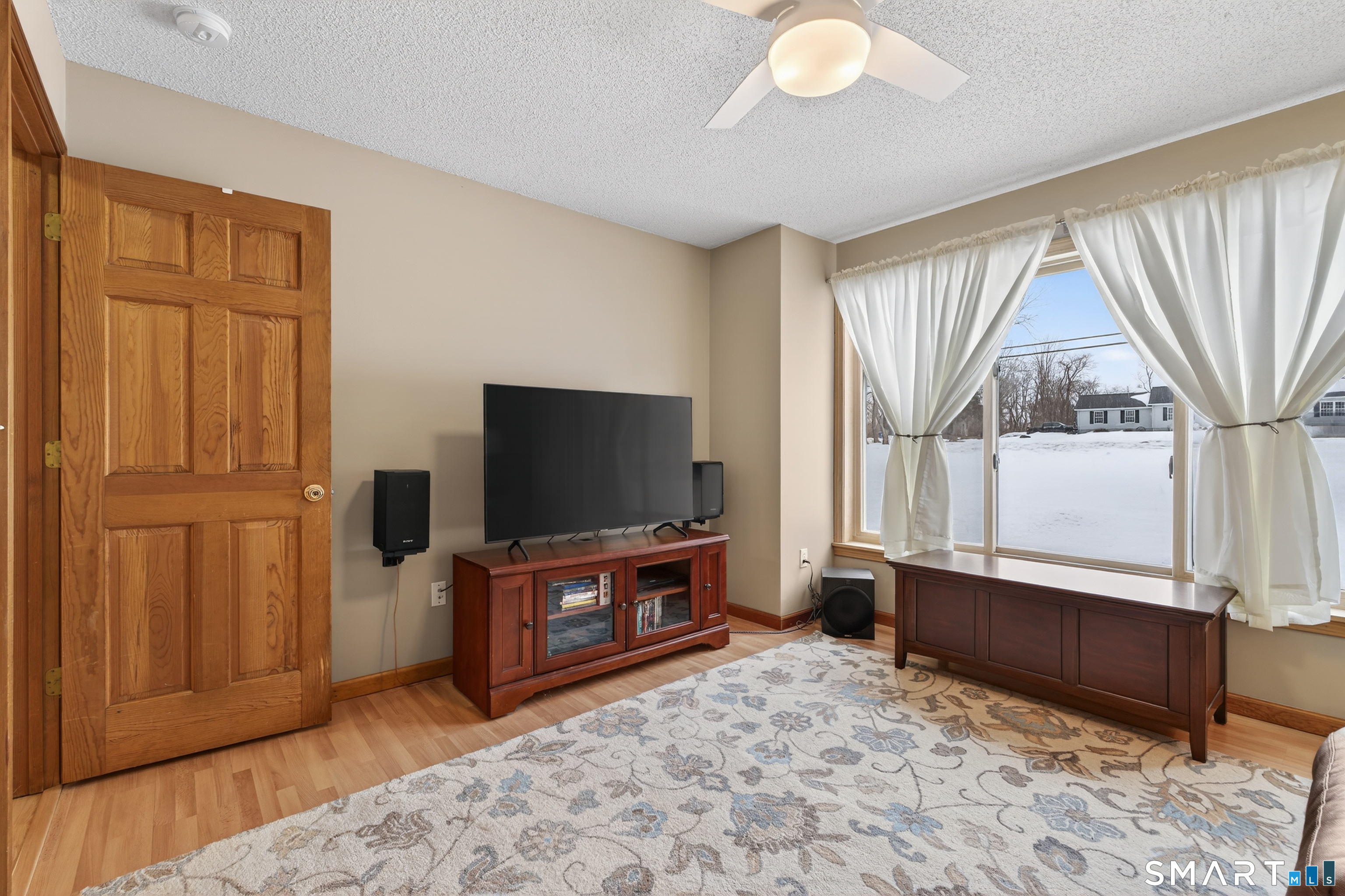 Charming storybook ranch with Cape-style curb appeal, complete with wrap-around front porch and classic dormers, set on a spacious yard bordered by woods. This thoughtfully designed home offers the ease of one-level living with dramatic architectural features and modern energy-efficient systems. The remodeled kitchen (approx. 4 years old) opens to a formal dining room, perfect for entertaining. A convenient mudroom leads to the laundry and pantry area for everyday functionality. The stunning two-story family room features a floor-to-ceiling fireplace and an open loft above, creating a bright, airy focal point. The private owner's suite includes deck access-ideal for a future hot tub-along with a custom walk-in closet system and a spa-like bath with double sinks, glass shower, and a large whirlpool tub. Two additional bedrooms and a full bath complete the main level. The finished walkout lower level provides flexible living space for a recreation room, home office, or gym. Energy efficiency is a major highlight with a nearly new heat pump for heating and cooling, plus newer bb heat for colder temperatures, delivering impressive utility savings. Located beside the desirable Woodbine neighborhood, this home offers a peaceful setting with great walking areas while still being convenient to town amenities