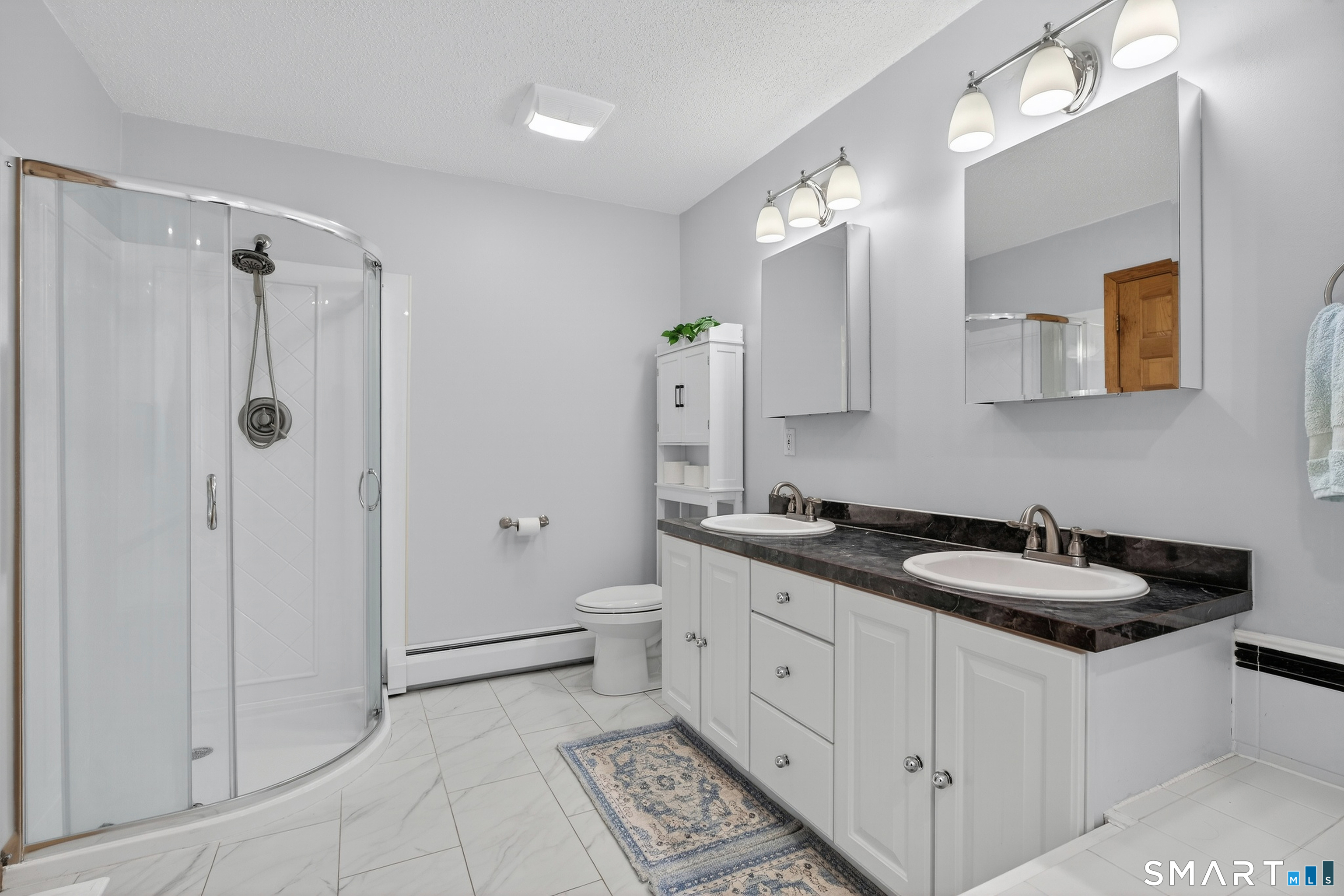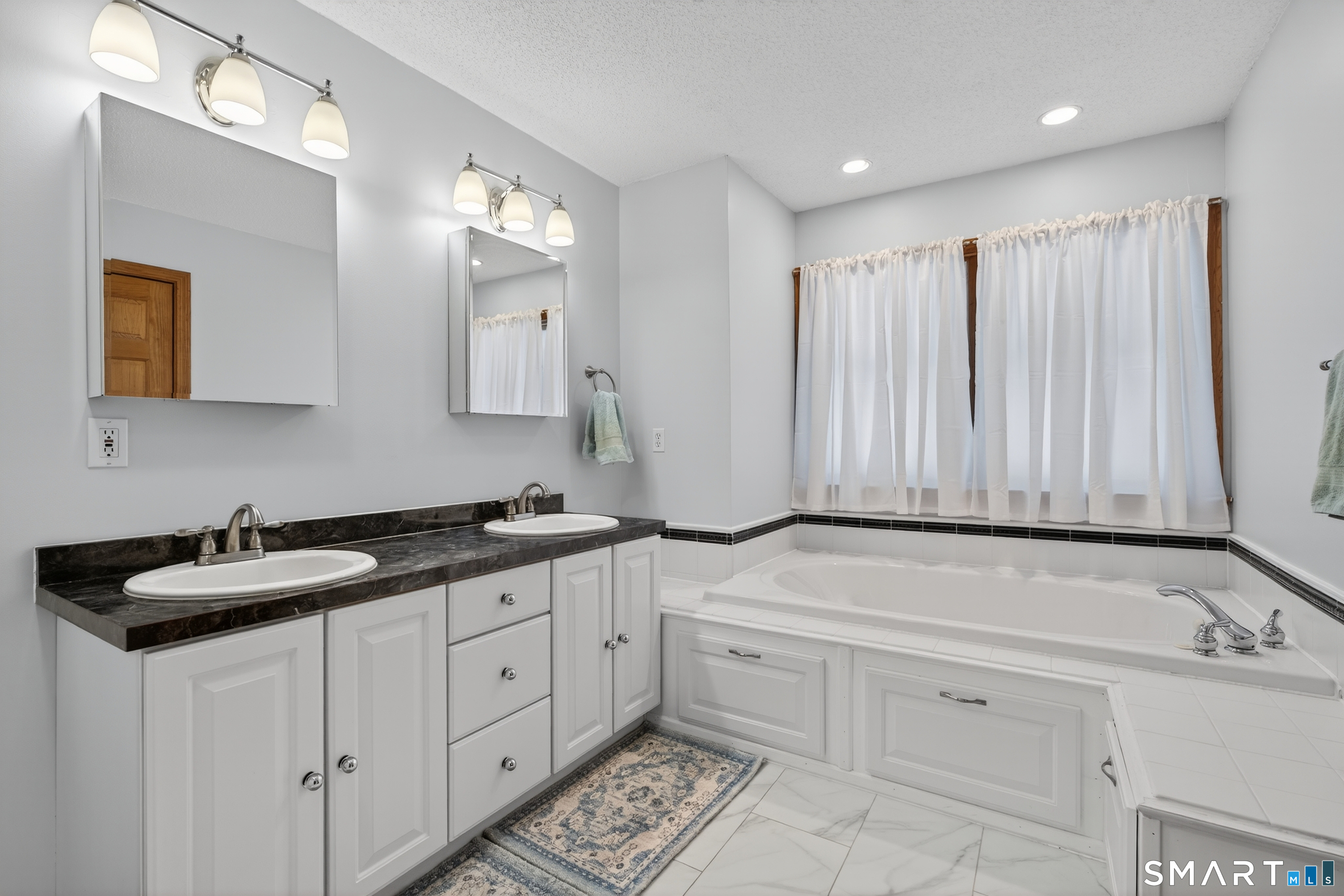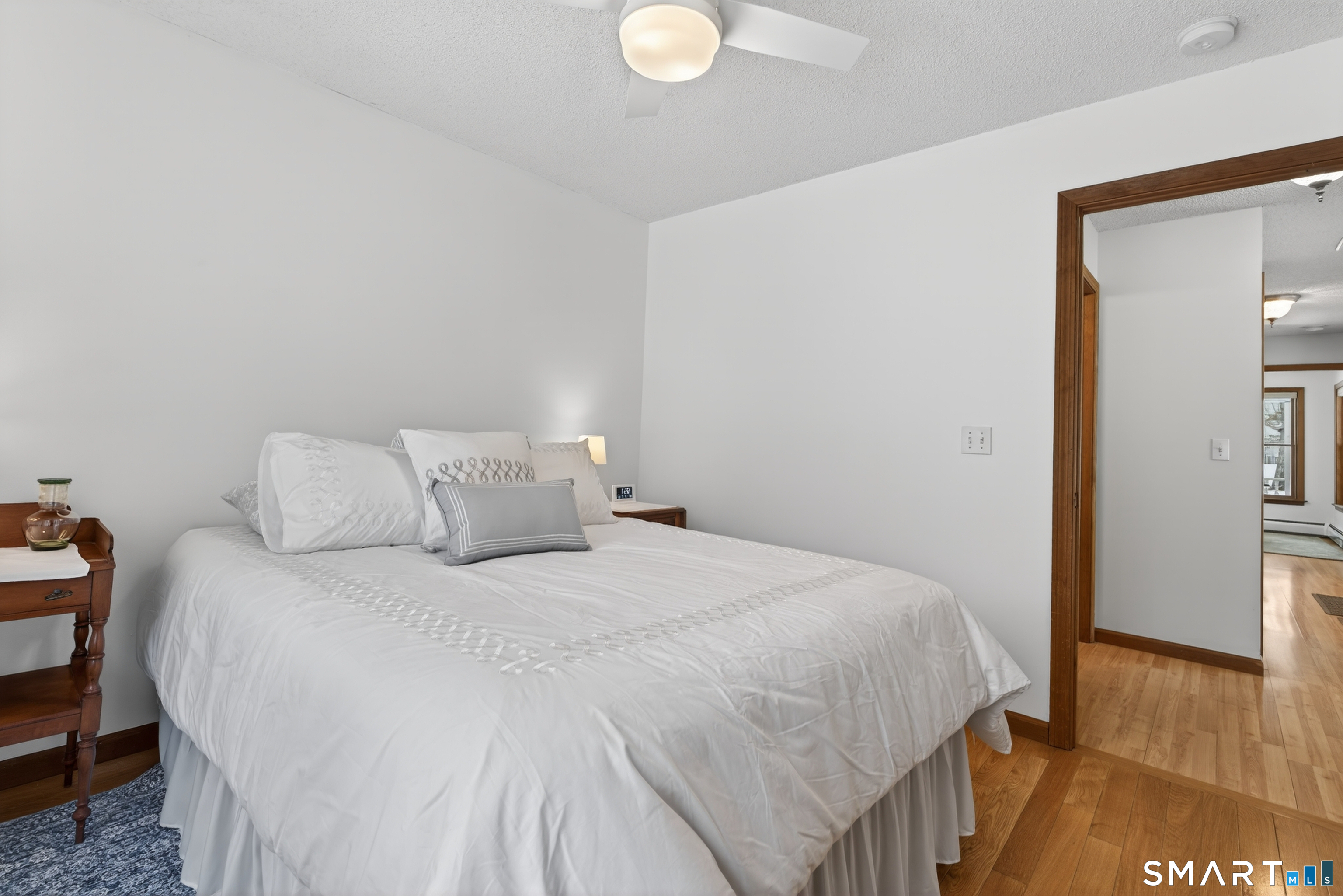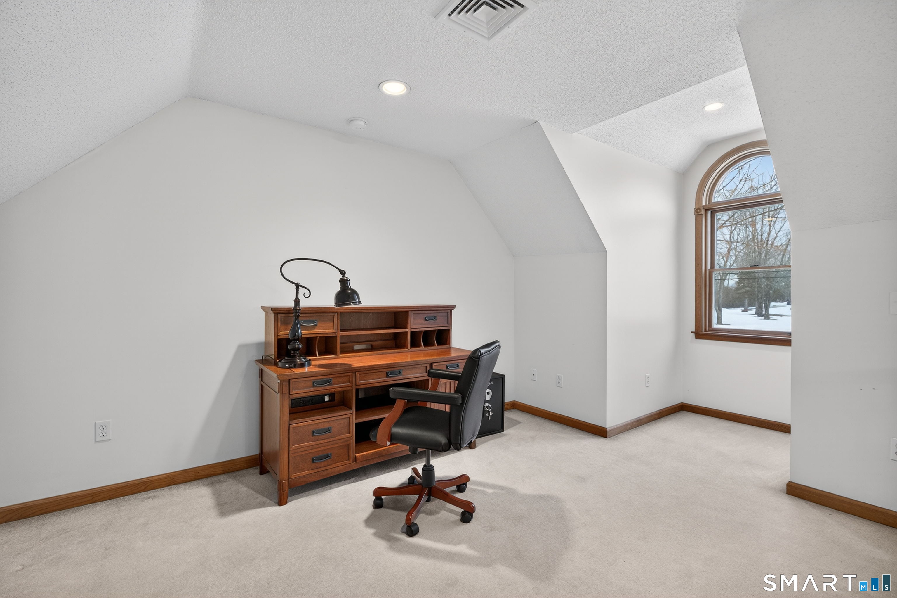Charming storybook ranch with Cape-style curb appeal, complete with wrap-around front porch and classic dormers, set on a spacious yard bordered by woods. This thoughtfully designed home offers the ease of one-level living with dramatic architectural features and modern energy-efficient systems. The remodeled kitchen (approx. 4 years old) opens to a formal dining room, perfect for entertaining. A convenient mudroom leads to the laundry and pantry area for everyday functionality. The stunning two-story family room features a floor-to-ceiling fireplace and an open loft above, creating a bright, airy focal point. The private owner's suite includes deck access-ideal for a future hot tub-along with a custom walk-in closet system and a spa-like bath with double sinks, glass shower, and a large whirlpool tub. Two additional bedrooms and a full bath complete the main level. The finished walkout lower level provides flexible living space for a recreation room, home office, or gym. Energy efficiency is a major highlight with a nearly new heat pump for heating and cooling, plus newer bb heat for colder temperatures, delivering impressive utility savings. Located beside the desirable Woodbine neighborhood, this home offers a peaceful setting with great walking areas while still being convenient to town amenities